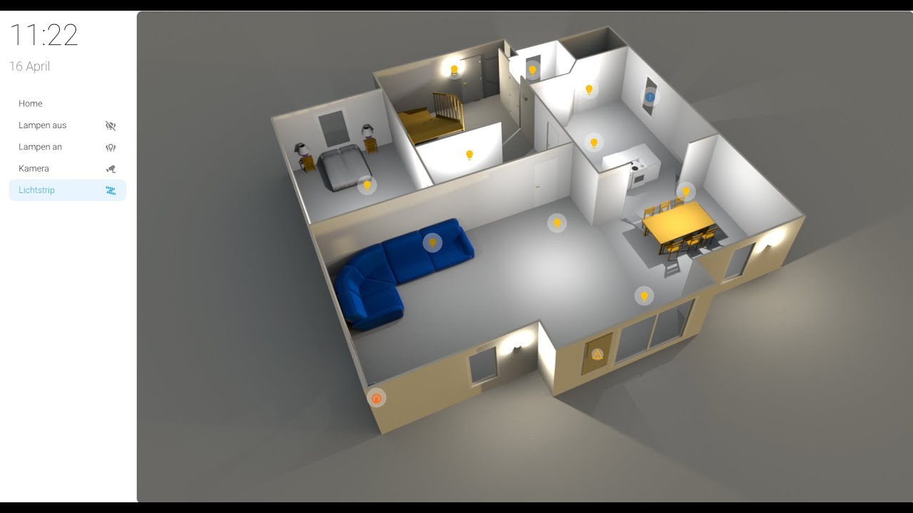 - Bedienung über 14 Zoll PoE-Displays im ganzen Haus